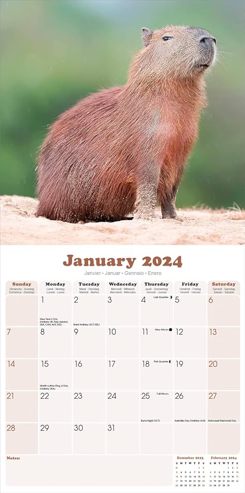 Capybara Calendar 2024 by Avonside – MegaCalendars.com